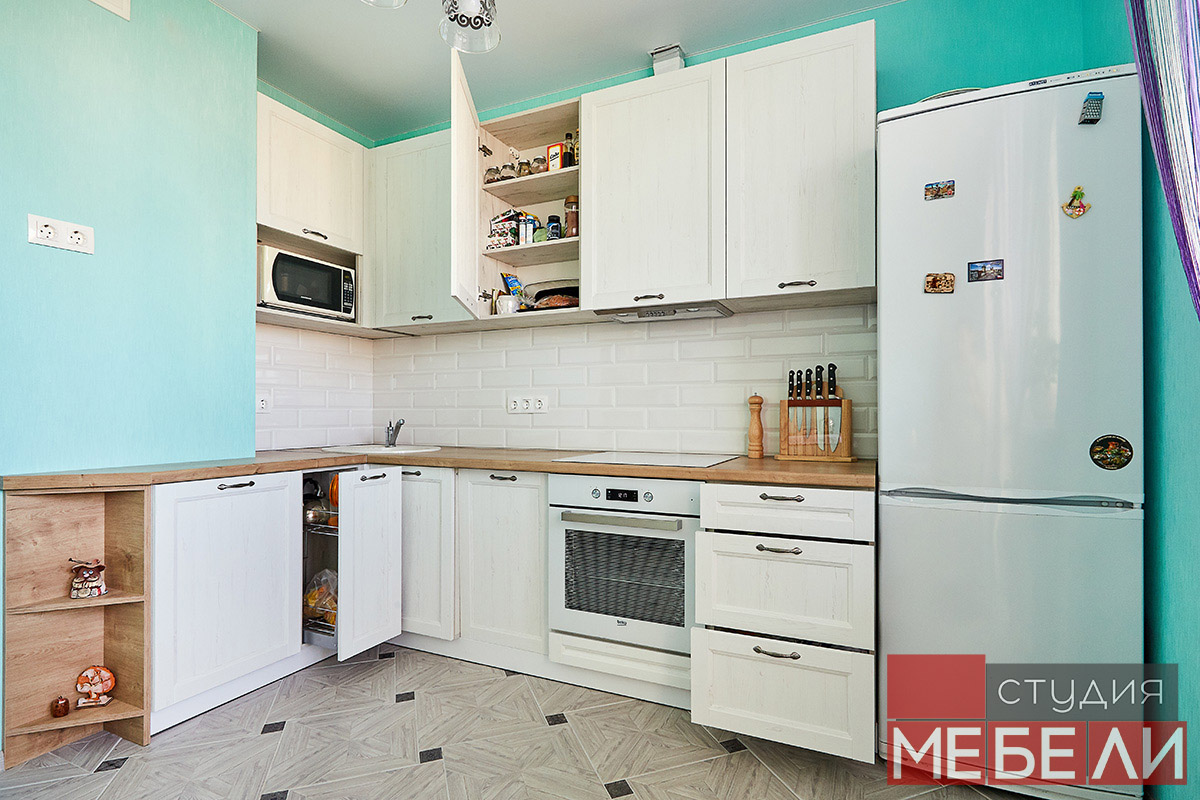 Наши специалисты позаботились о комфорте и эргономичности процесса использования кухни. Гарнитур оснащен очень хорошо себя зарекомендовавшей фурнитурой Hettich. Встроенная вытяжка ZorG полностью закрыта одним их навесных шкафов и практически незаметна. Плавность открытия и большая прочность обеспечивается выдвижными механизмами Hettich Quadro. Верхние шкафы оснащены петлями с доводчиками, которые позволяют плавно открывать и закрывать дверцы, предотвращая случайные удары и хлопки.