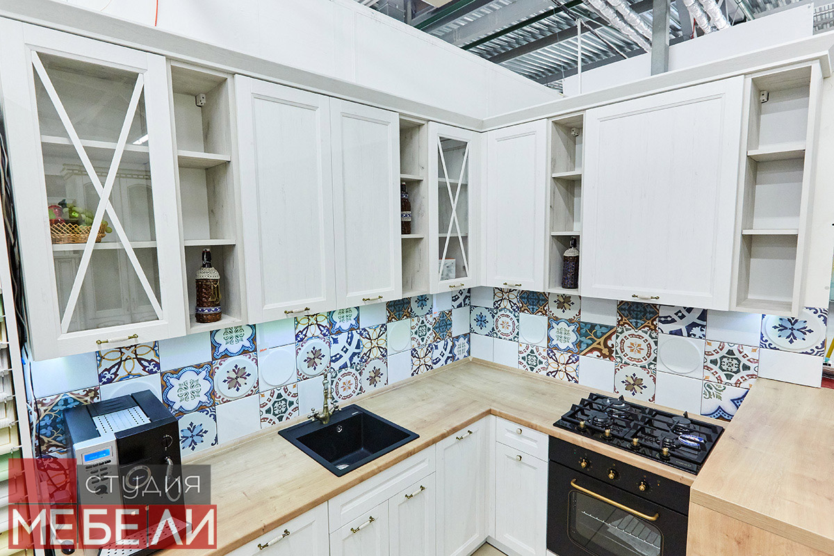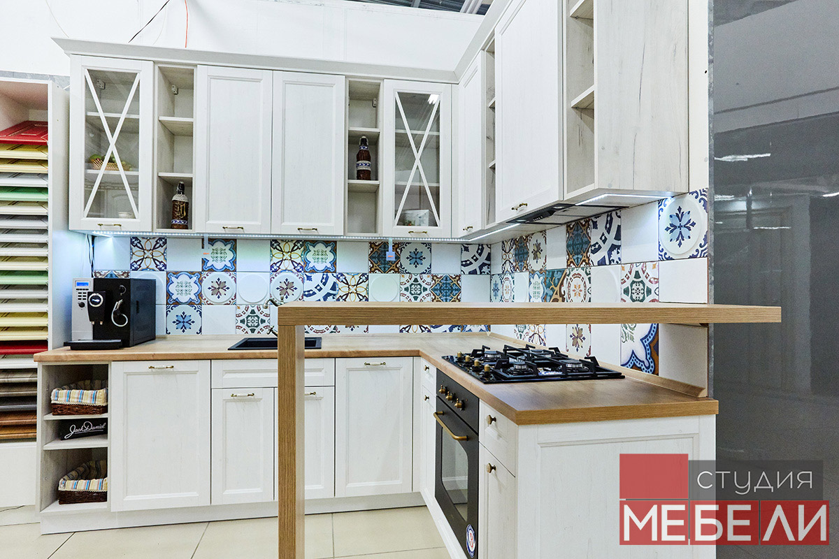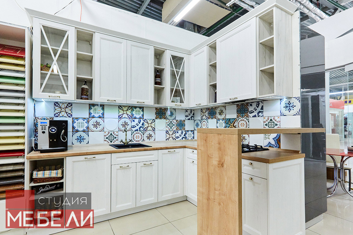 Фартук выполняет не только функциональную, но и стилистическую роль, привлекая внимание разнообразием рисунка и оттеняя светлые фасады. Большое количество открытых полок обеспечивают доступ к часто используемым кухонным принадлежностям, одновременно позволяя персонализировать Вашу кухню, разместив яркие аксессуары или фотографии. Встроенная техника CATA (Испания) выполнена в стиле ретро, однако имеет самые современные функции.