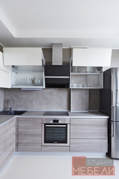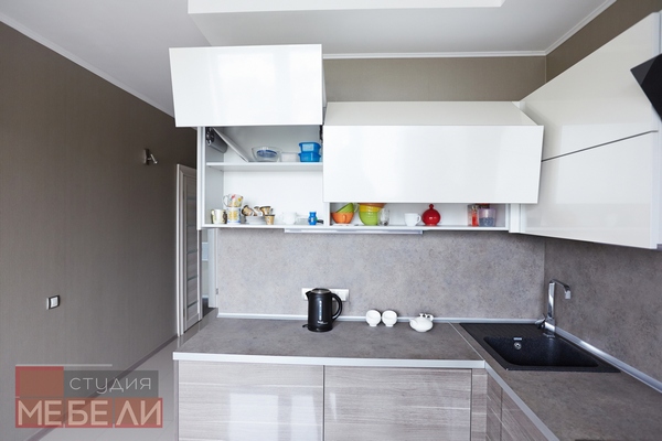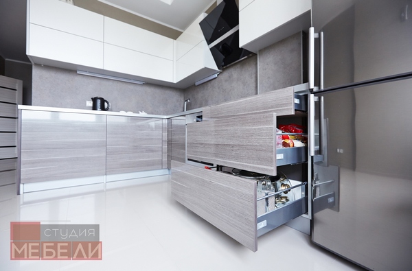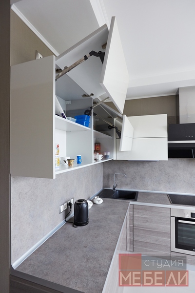 Наши специалисты используют только качественную фурнитуру при изготовлении мебели. Все шкафы и шуфляды нижнего яруса открываются одним касанием, благодаря механизму Push to open. Для полного выдвижения шуфляд и плавного скольжения, не зависимо от нагрузки, используются тамндембоксы Hettich. Широкие верхние шкафы оснащены подъемными механизмами Avеntos HF от австрийской компании Вlum, гарантирующими комфорт в использовании и экономию пространства в верхней зоне.